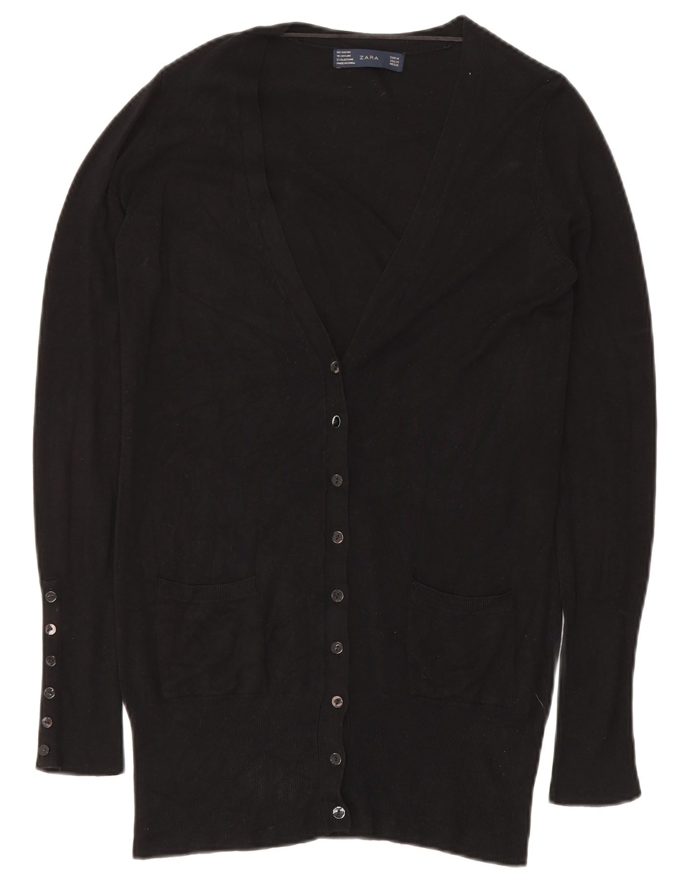 ZARA Damen Longline-Cardigan-Pullover UK 14 Medium Black Rayon