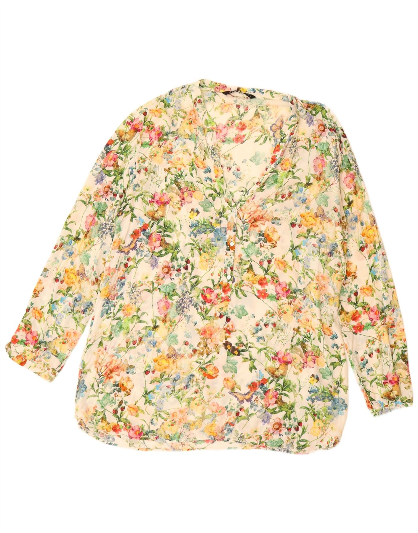ZARA Damen Longline-Langarmblusenoberteil UK 16 Large Off White Floral