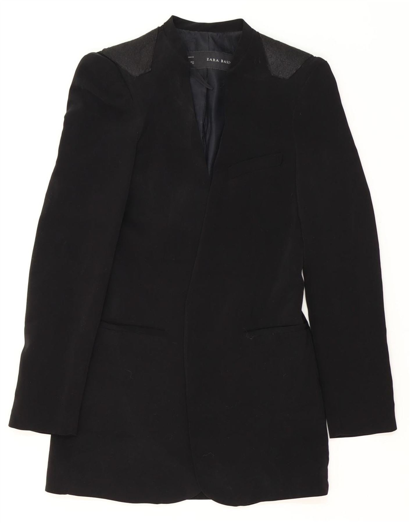 ZARA Damen Longline Open Blazer Jacke UK 10 Small Schwarz Acetat