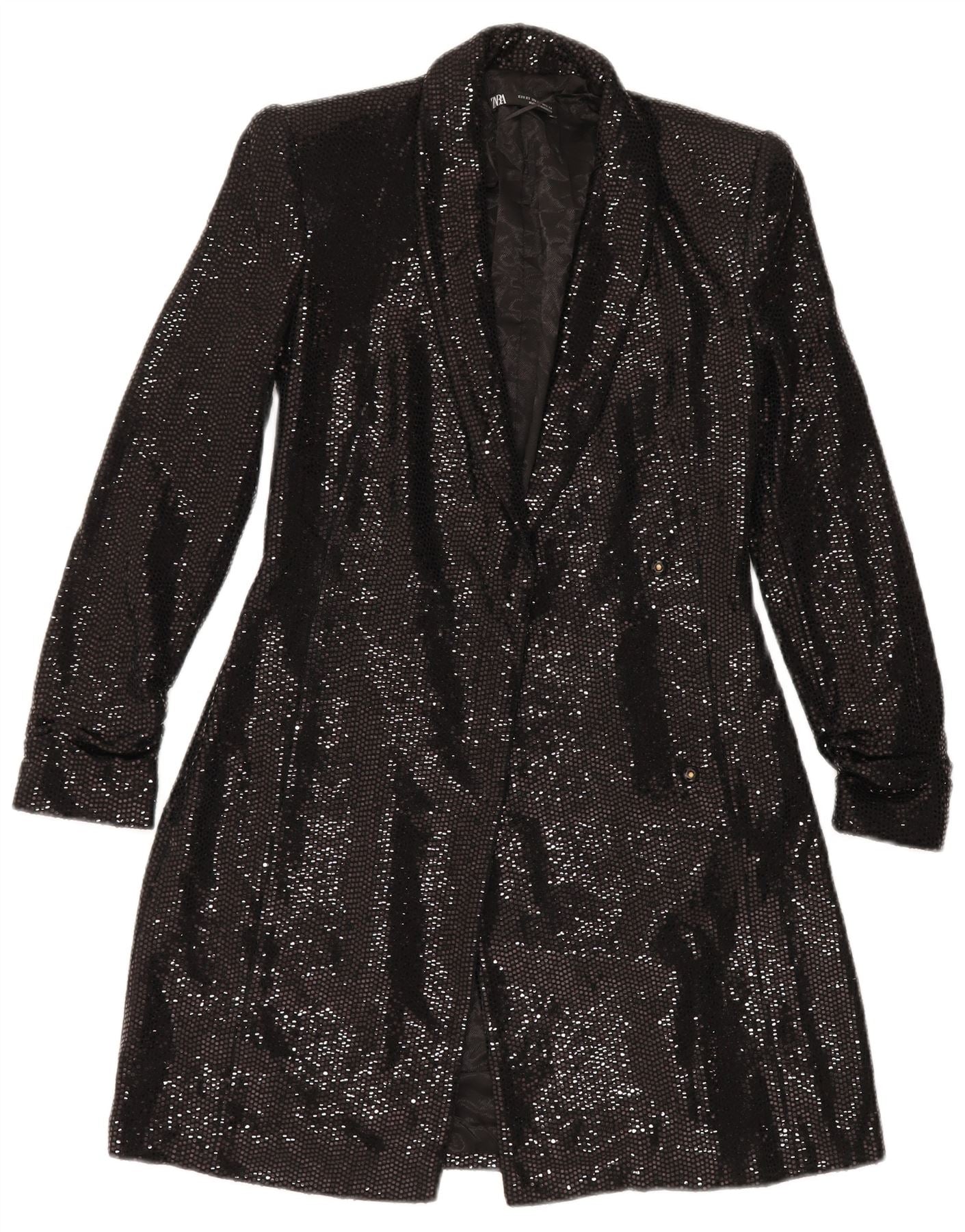 ZARA Damen Longline Open Blazer Jacke UK 6 XS Schwarz Polyamid