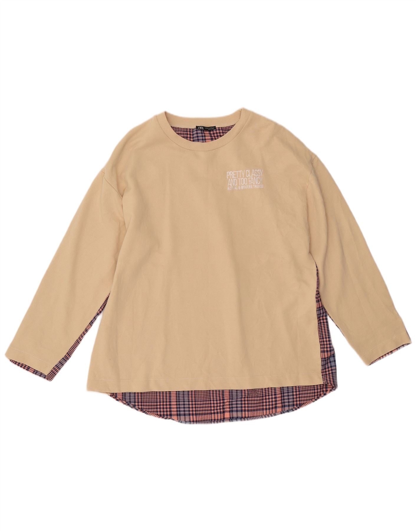 ZARA Damen-Sweatshirt mit lockerer Passform, UK 14, Mittelbeige, Farbblock