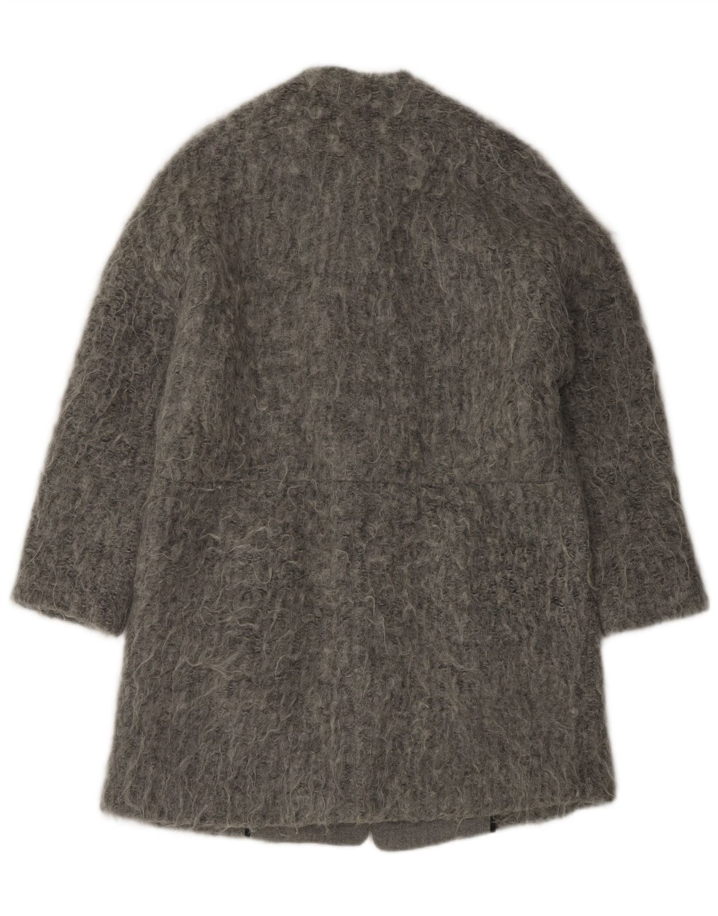 - KI-Beschreibung: Dieser Damenmantel von Zara ist aus einem grauen Strickstoff mit einer charakteristischen, zottigen, pelzähnlichen Textur gefertigt. Es verfügt über eine entspannte Passform und einen Rundhalsausschnitt. Die 3/4-Ärmel sorgen für einen modernen Touch. Für Komfort und Wärme ist es vollständig gefüttert. Dezente Taschen sind in das Design integriert. Der vordere Verschluss ist mit dezenten Druckknöpfen gesichert. Dieses stilvolle Stück bietet sowohl Wärme als auch moderne Eleganz.