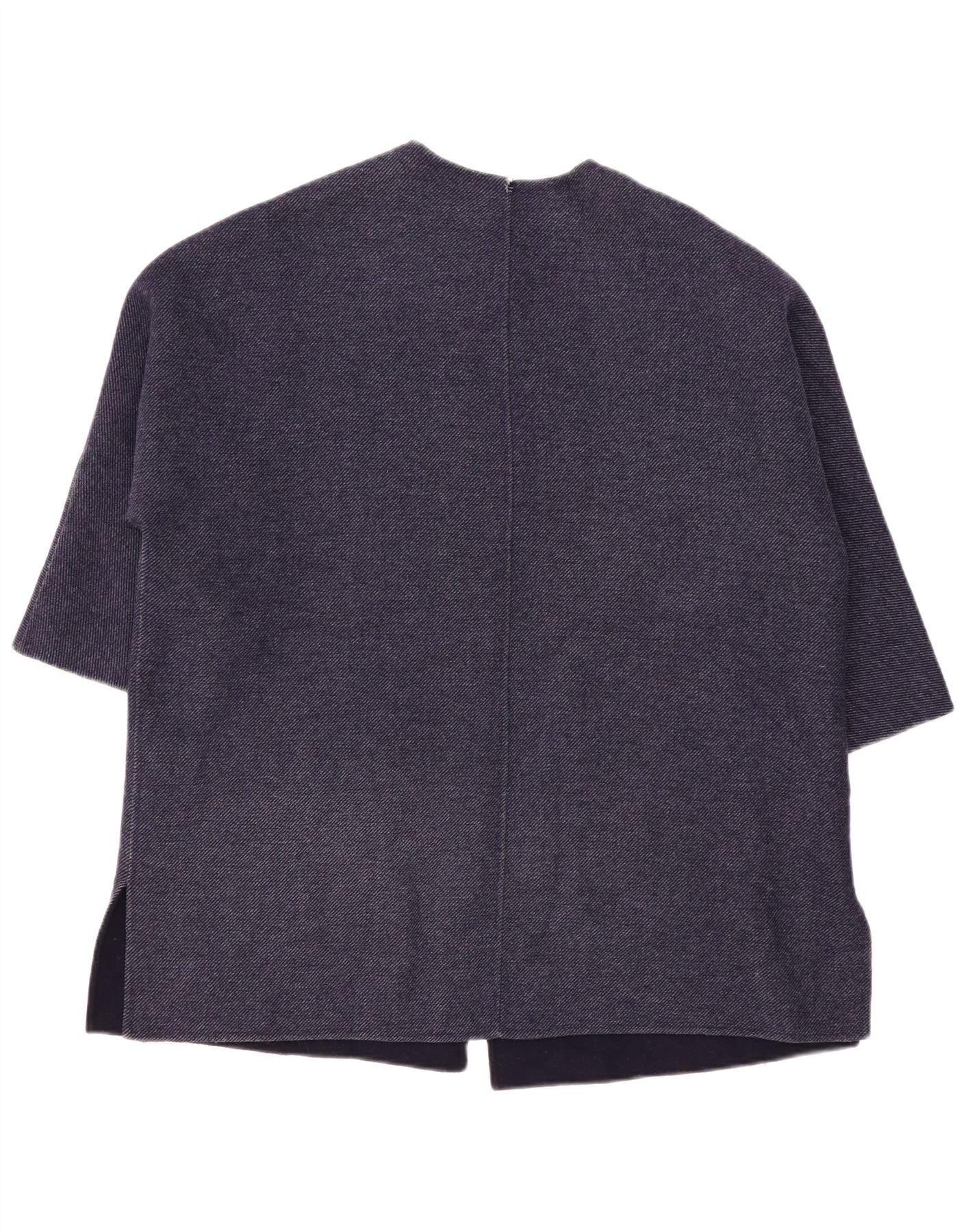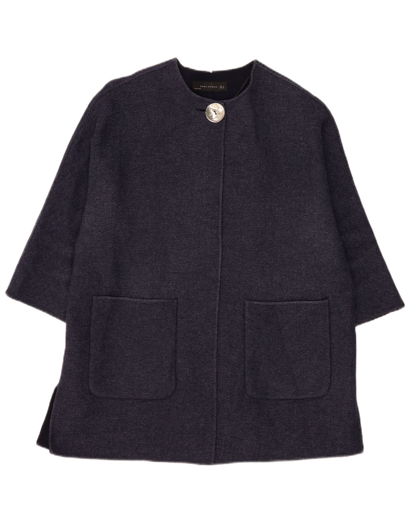 ZARA Damen Übergroßer 3/4-Ärmel-Mantel UK 10 Small Marineblaue Wolle