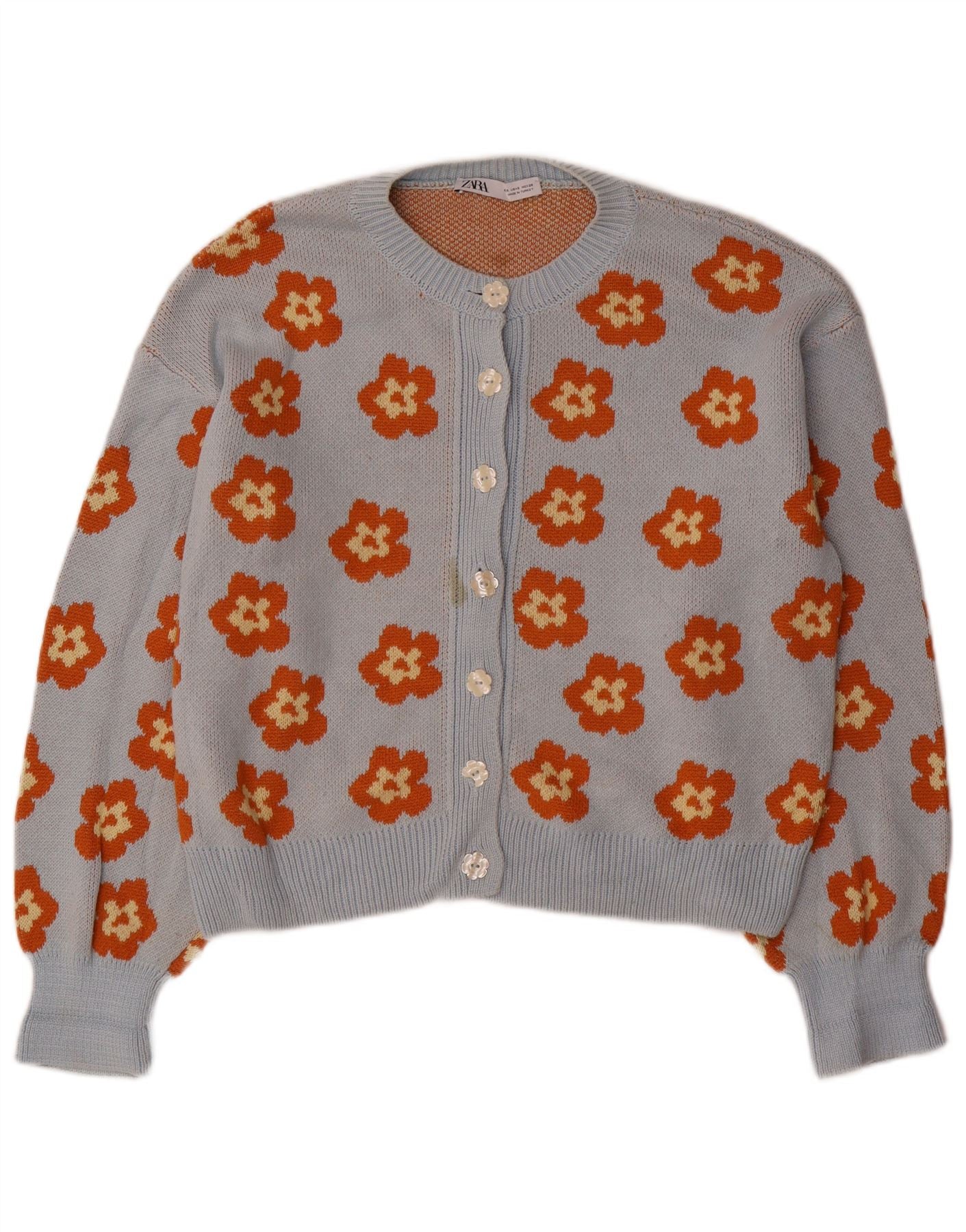 Zara Damen-Strickjacke in Übergröße, Gr. 10, klein, blau geblümt