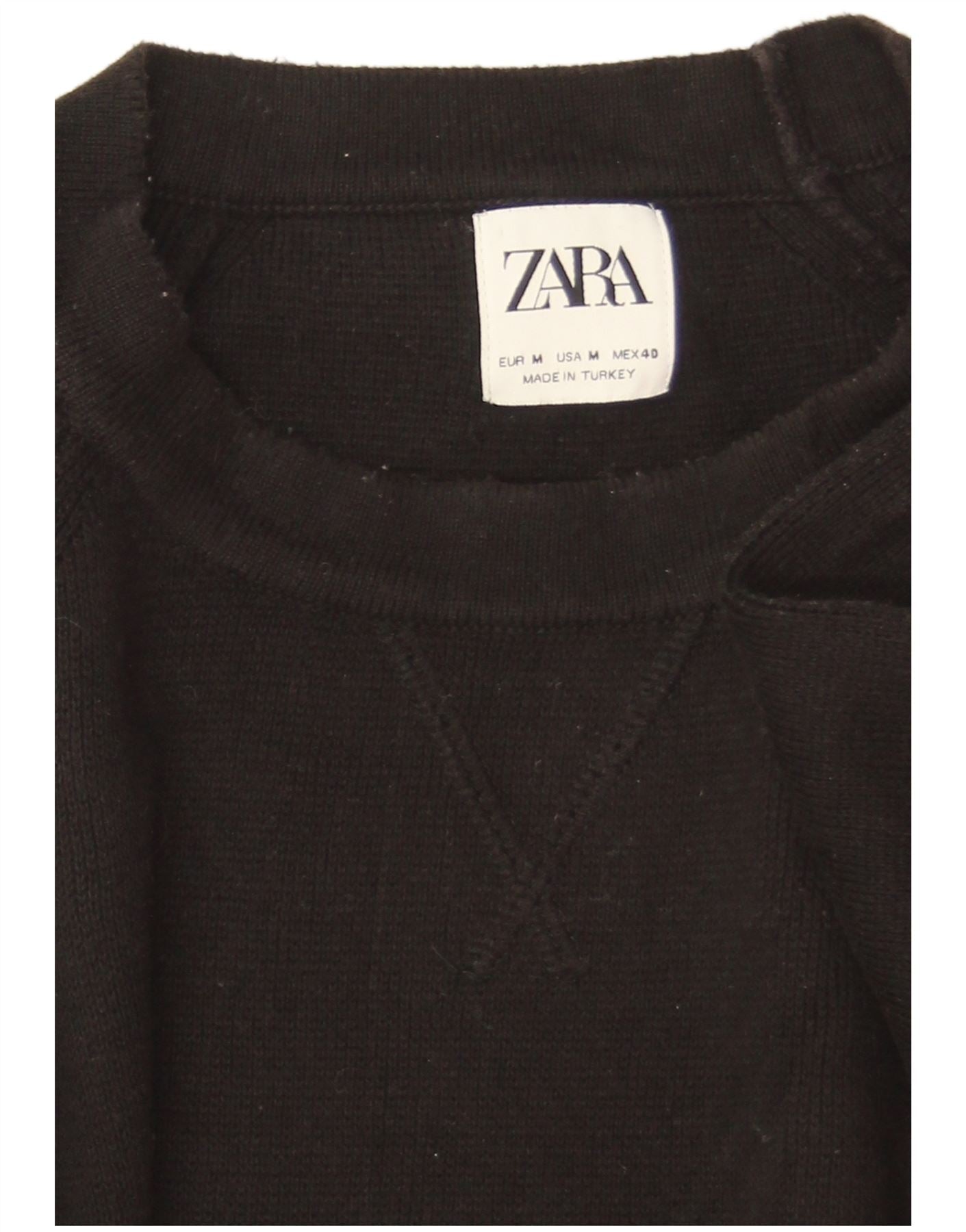 Zara Damen-Pullover, übergroß, Rundhalsausschnitt, Gr. 14, mittelschwarz, Baumwolle