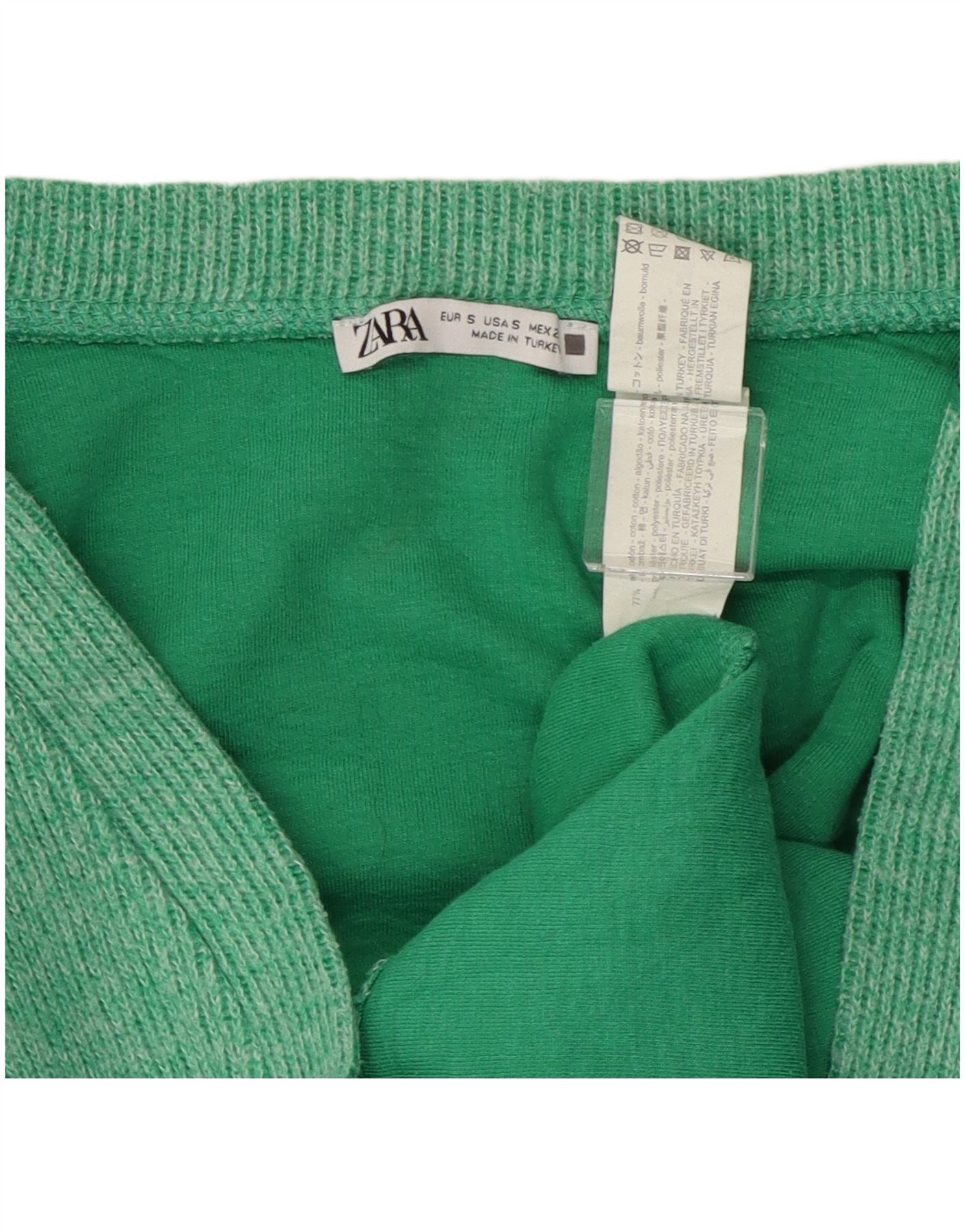 ZARA Damen-Strickjacke, übergroß, bauchfrei, Gr. 10, Größe S, Grün, Baumwolle