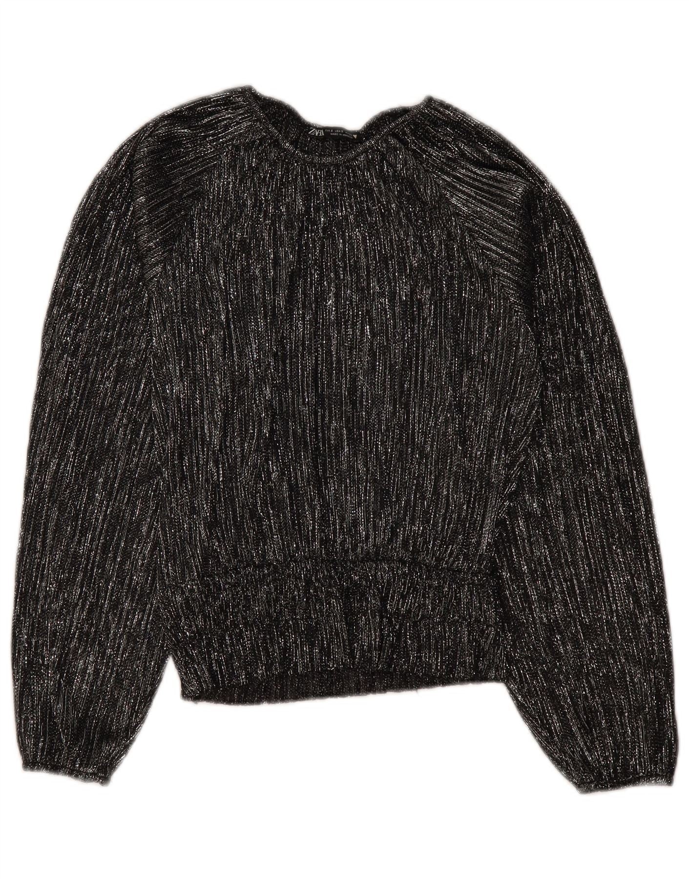 - KI-Beschreibung: Dieser Damen-Pullover mit Rundhalsausschnitt von Zara ist aus einem leichten schwarzen Strickstoff gefertigt. Es verfügt über einen auffälligen Glitzerakzent, der ein dezentes Streifenmuster erzeugt. Das Material bietet angenehmen Stretch und ist für Wärme gefüttert. Es hat eine entspannte, verkürzte Passform und einen klassischen Rundhalsausschnitt. Lange Ärmel runden die moderne Pullover-Silhouette ab und machen ihn zu einer vielseitigen und stilvollen Wahl.