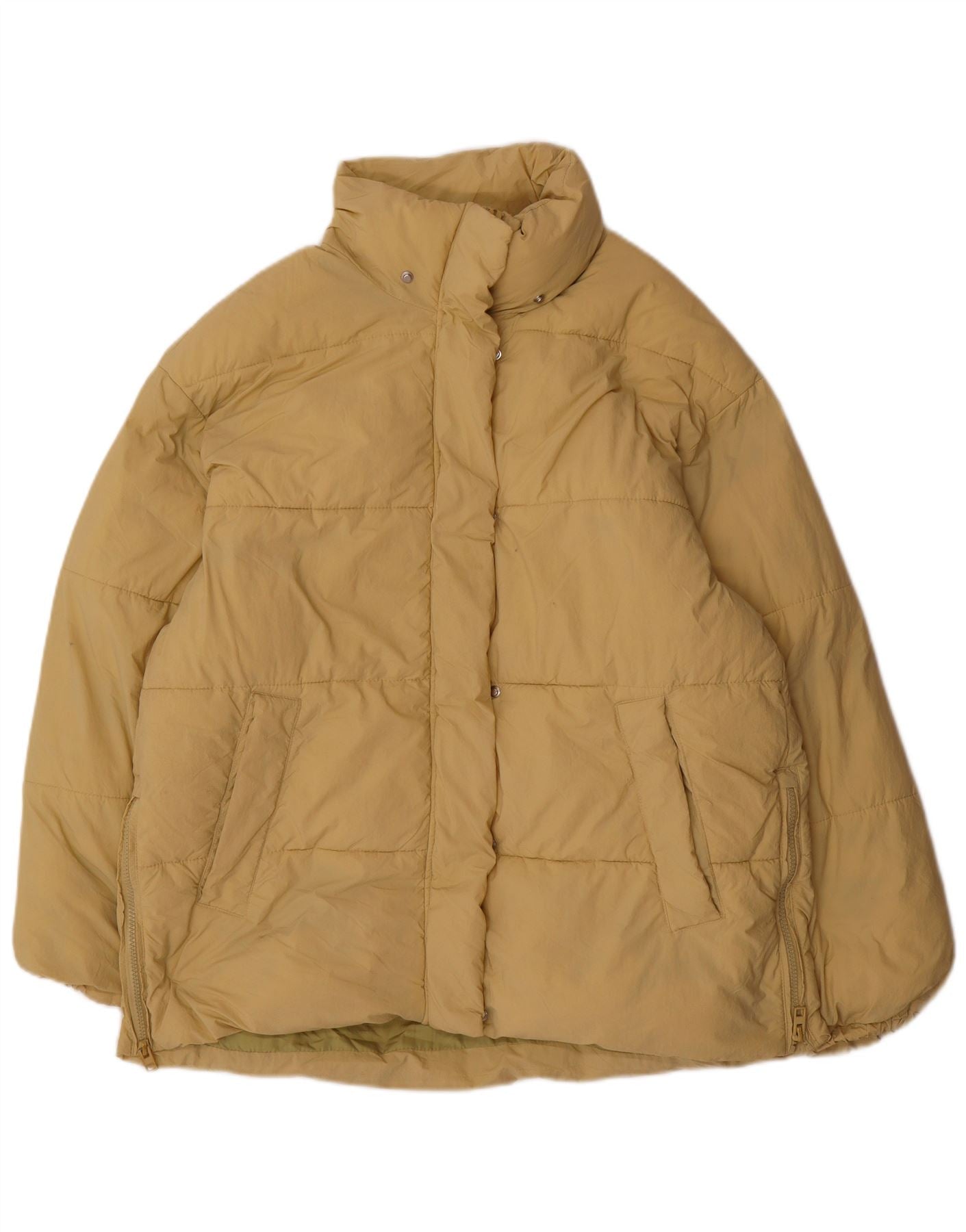 ZARA Damen Übergroße wattierte Jacke UK 14 Medium Beige Polyester