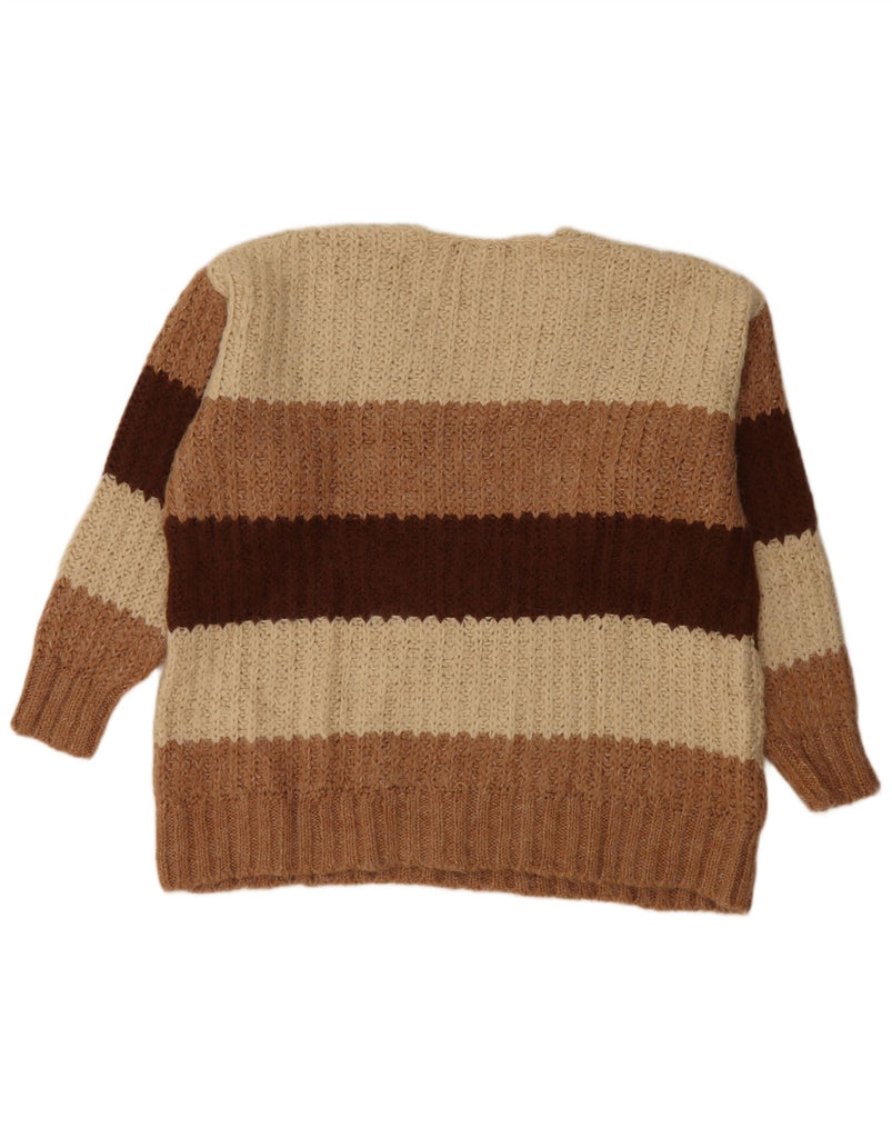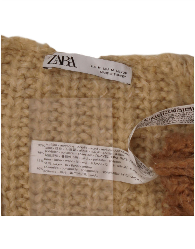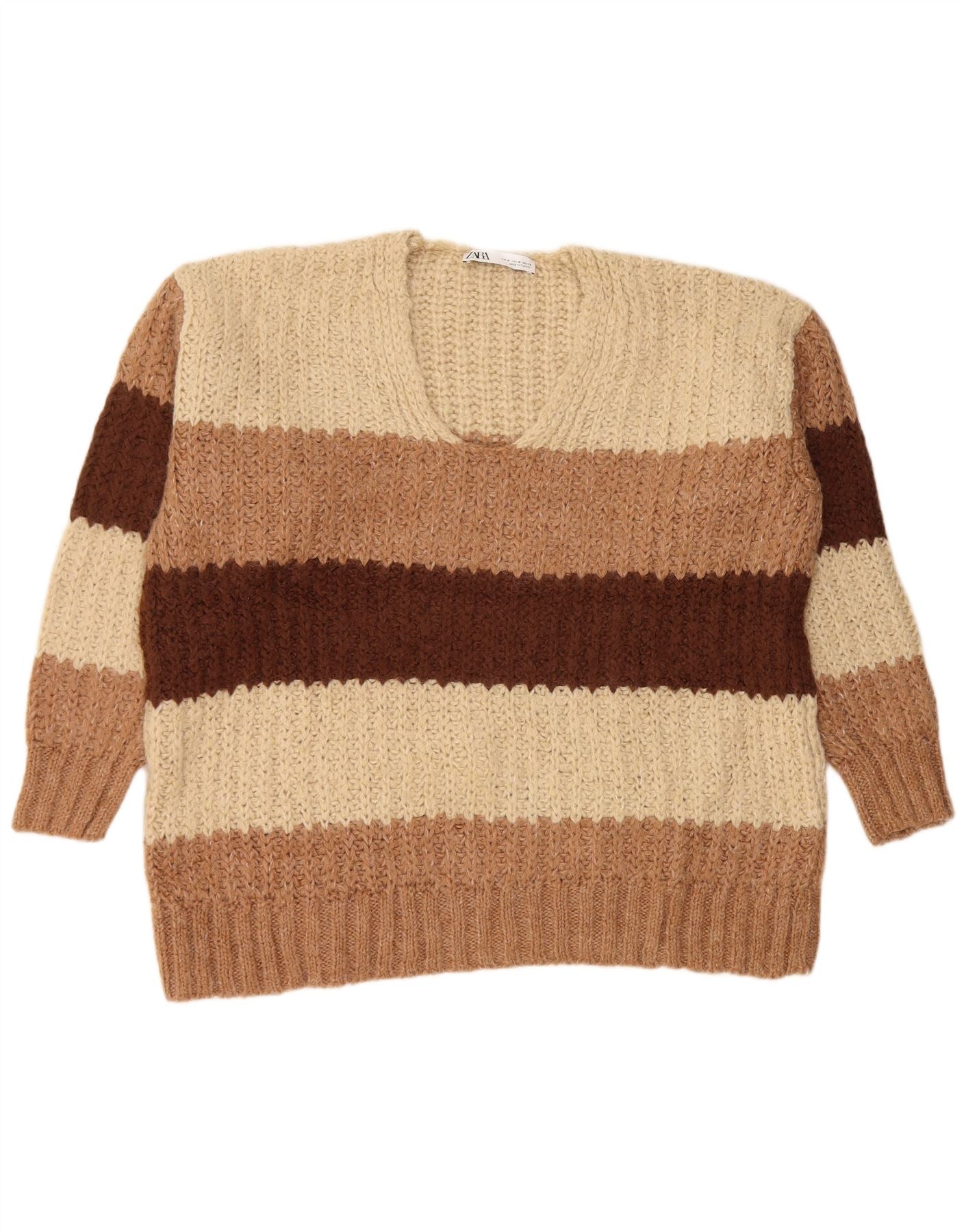 ZARA Damen-Pullover, übergroß, V-Ausschnitt, Gr. 14, mittelbeige gestreift