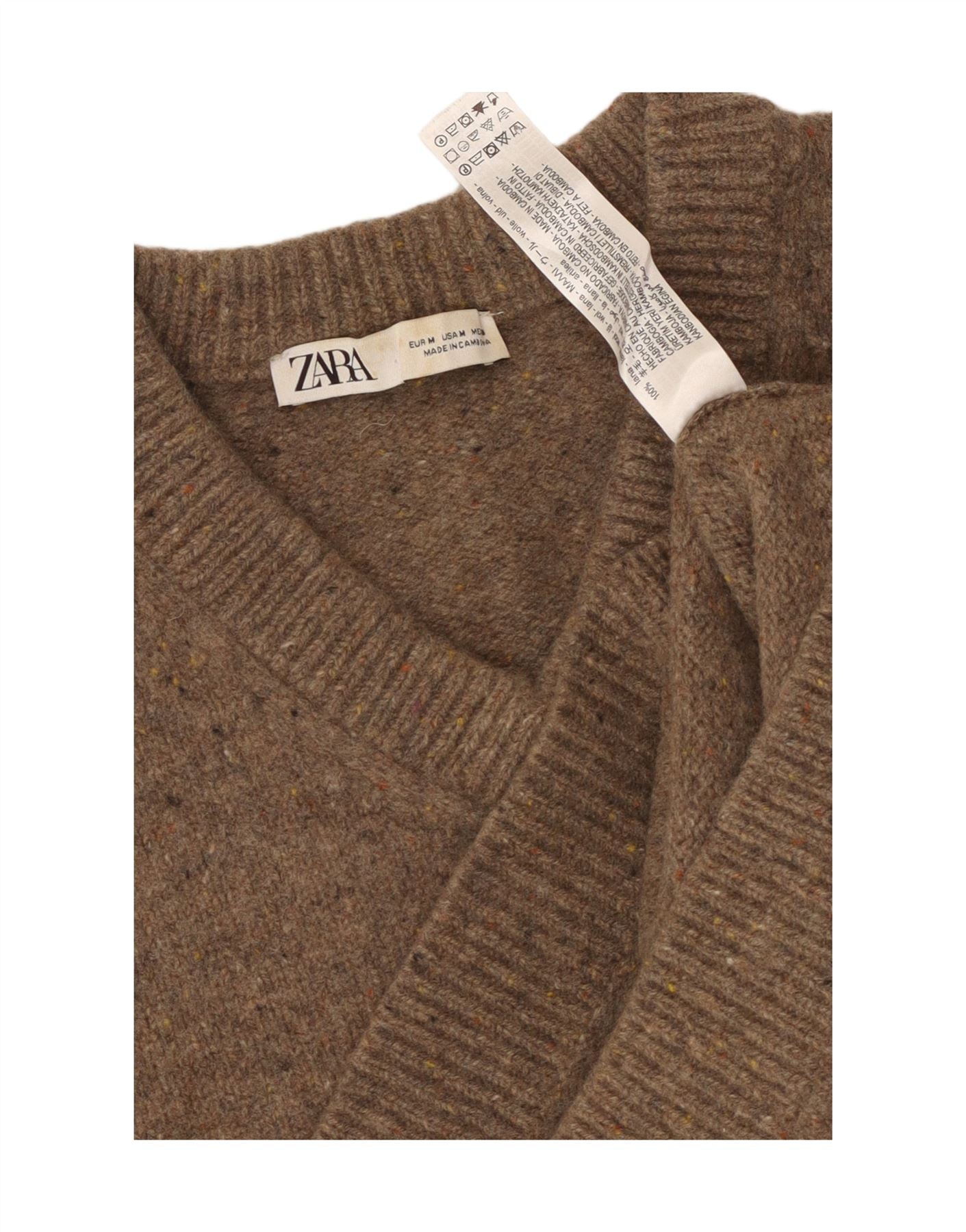 ZARA Womens Oversized V-Neck Jumper Sweater UK 14 Medium Brown Flecked