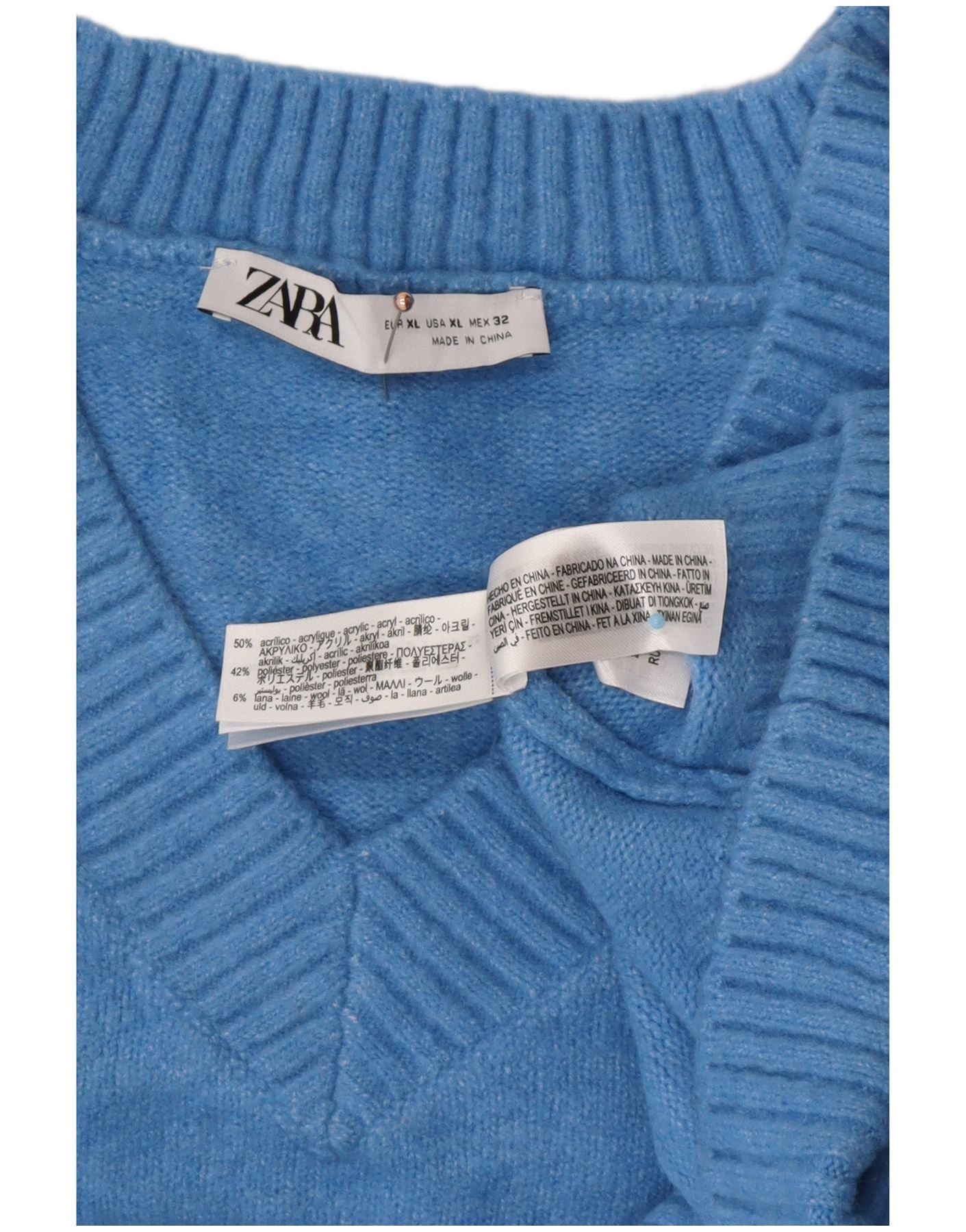 ZARA Damen-Pullover, übergroß, V-Ausschnitt, Gr. 18, XL, Blau, Acryl