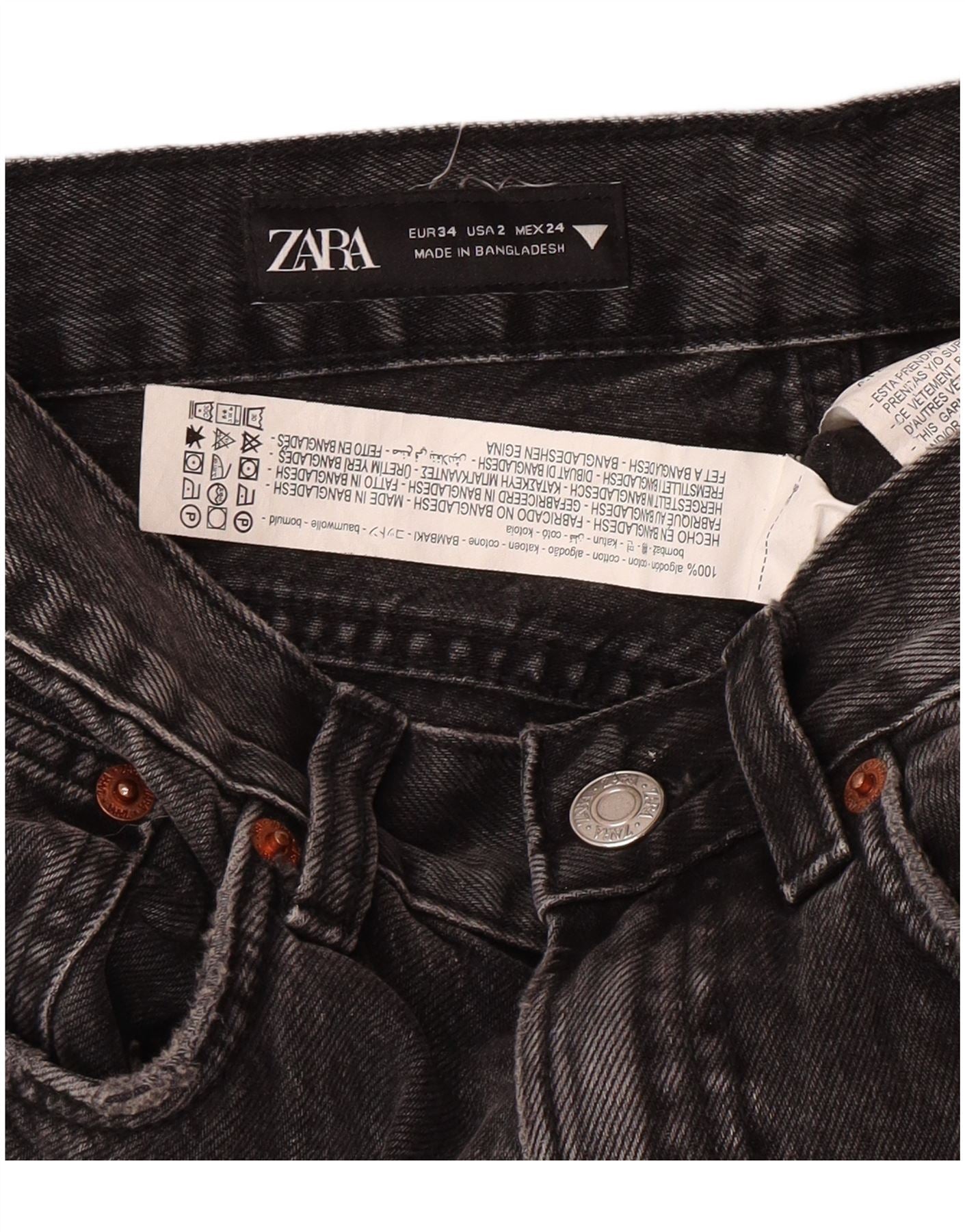 - KI-Beschreibung: Diese geraden Damenjeans von Zara sind aus schwarzem Denim im klassischen Stil gefertigt. Sie bestehen aus 100 % Baumwolle und bieten eine bequeme reguläre Passform. Der Knopfverschluss und die Taschen sind praktische Details. Diese Jeans sind ein vielseitiges Basic für die Garderobe und eignen sich perfekt für den Alltag. Das gerade Beindesign sorgt für eine zeitlose Silhouette.