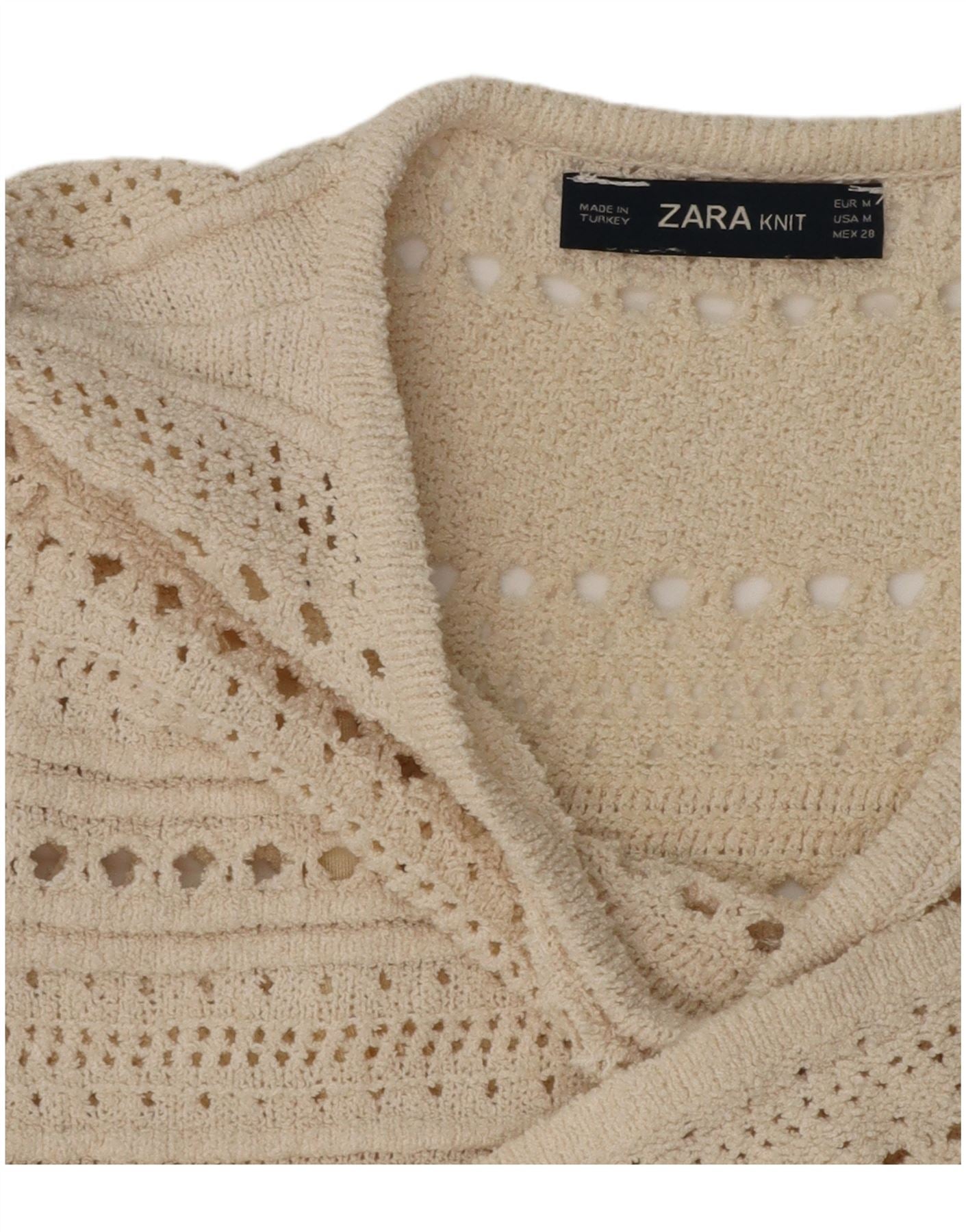 Durchsichtiges, kurzärmliges Pulloverkleid für Damen von Zara, Größe M, gebrochenes Weiß