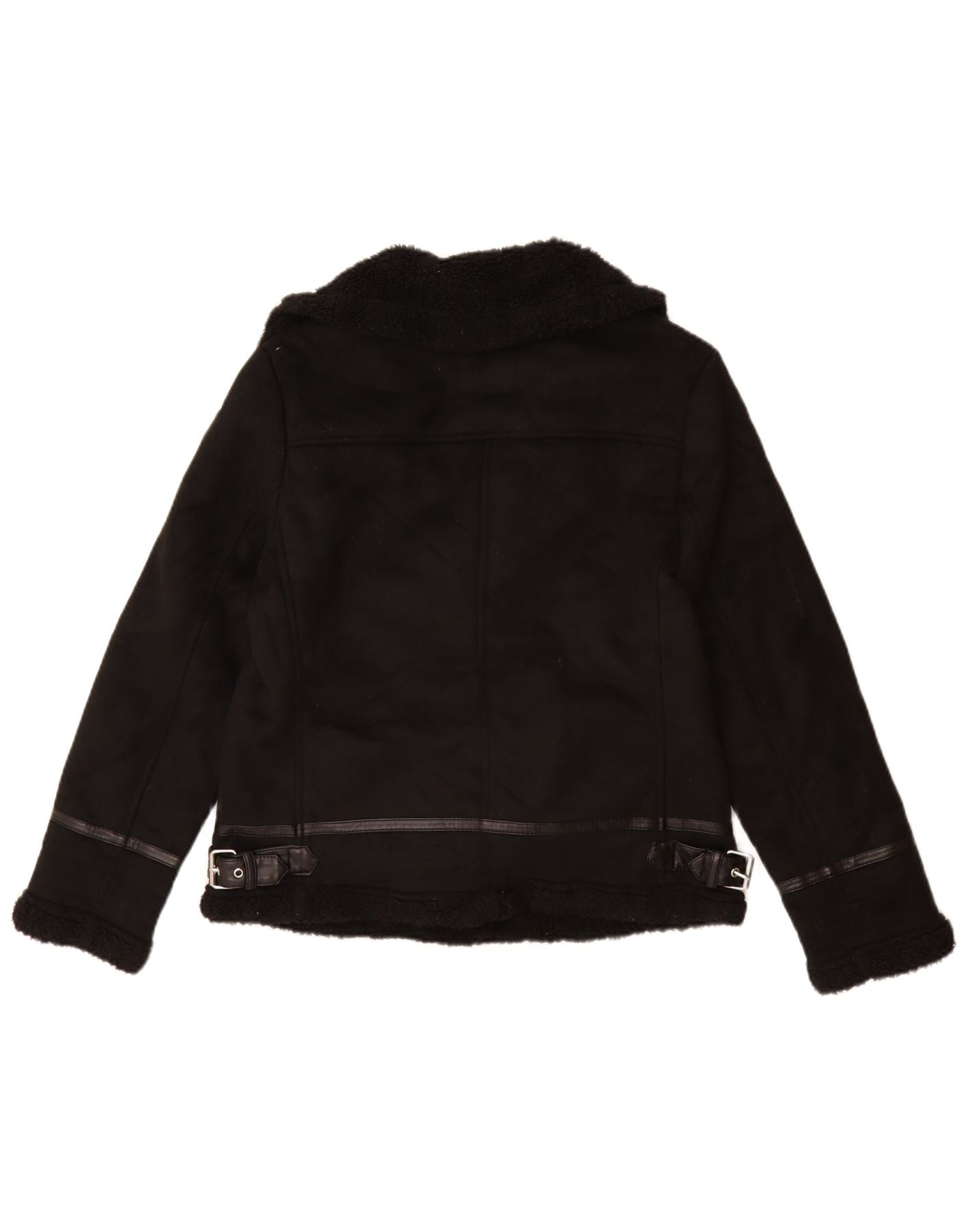 ZARA Damen Sherpa Bikerjacke UK 12 Medium Schwarz Polyester
