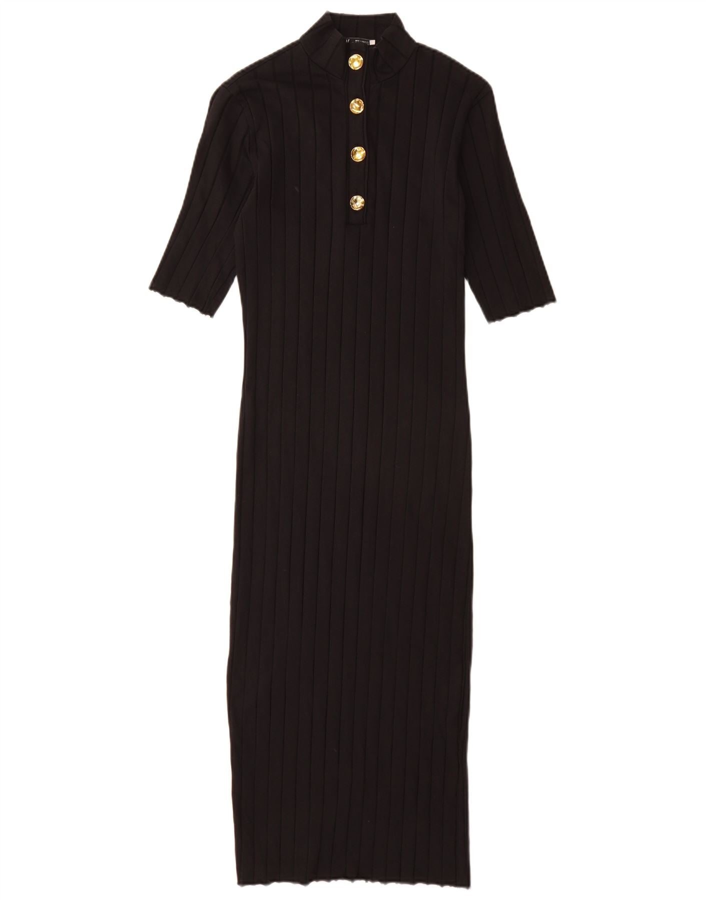 - KI-Beschreibung: Dieses figurbetonte Damenkleid von Zara ist aus schwarzem Rippstrickstoff gefertigt und bietet Dehnbarkeit und Komfort. Es verfügt über einen raffinierten Stehkragen und kurze Ärmel. Die schmale Passform betont die Silhouette. Goldfarbene Knöpfe zieren die Vorderseite und setzen einen klassischen Akzent. Dieses Kleid vereint zeitlosen Stil mit moderner Schneiderkunst.