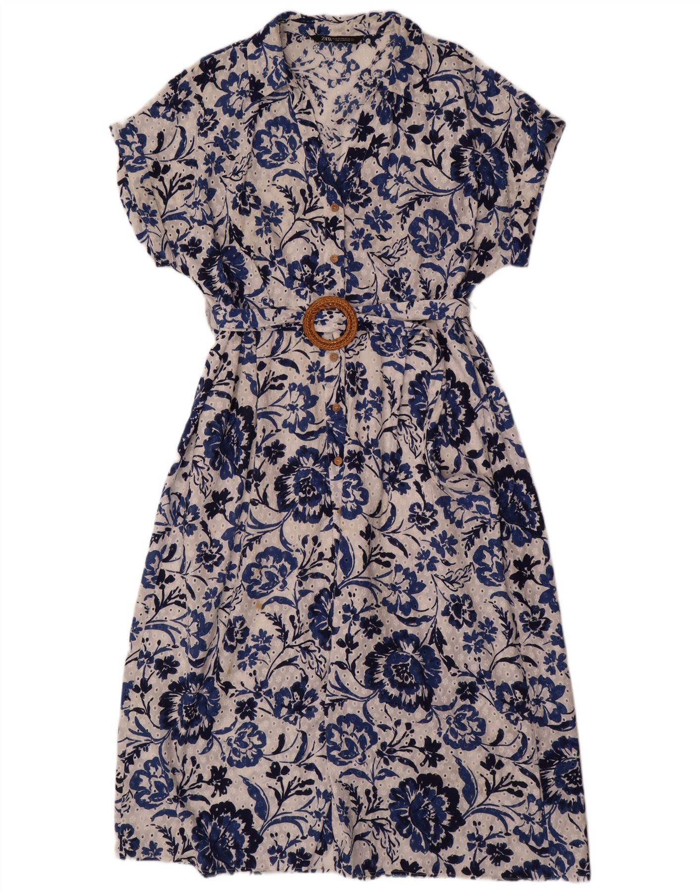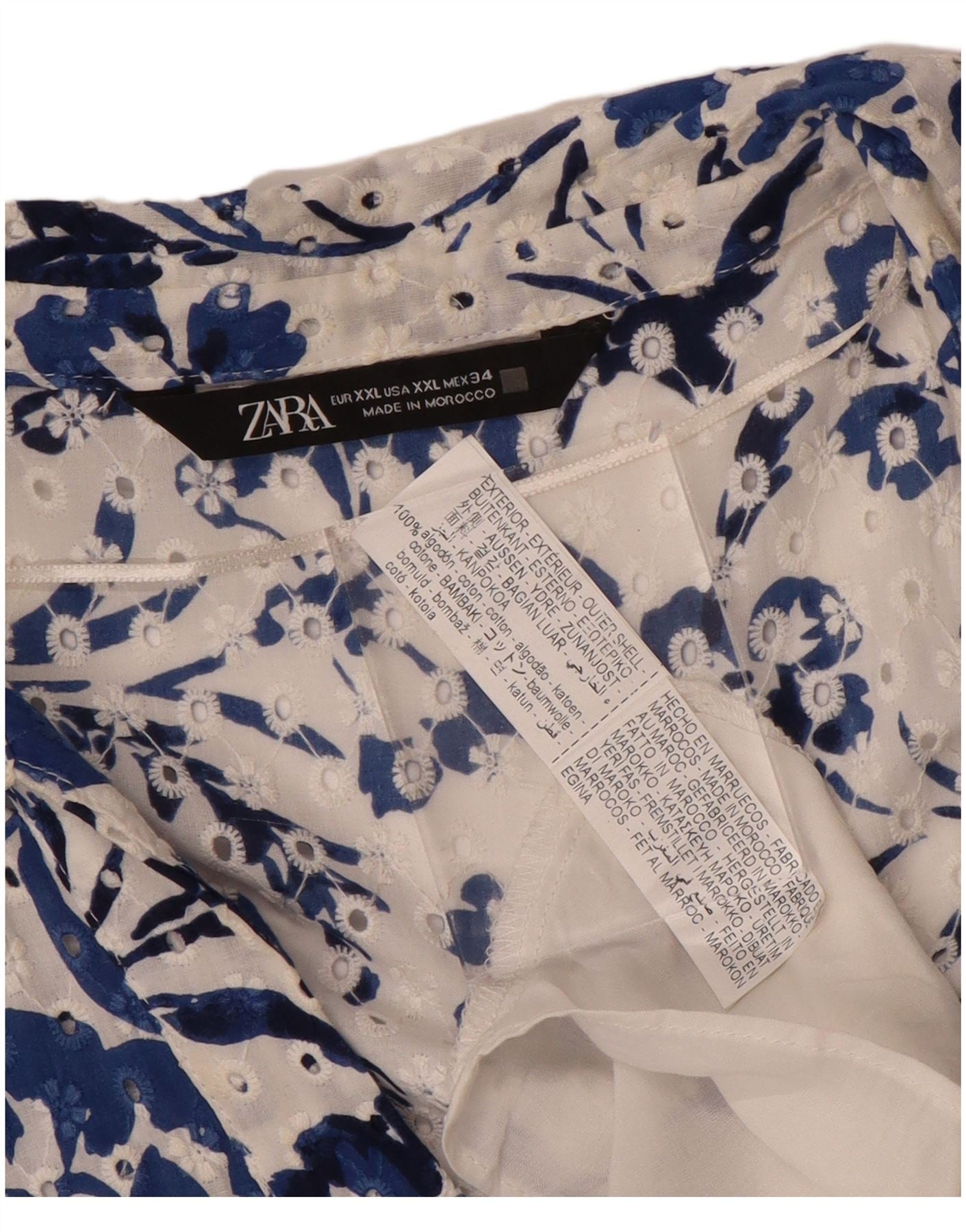 ZARA Damen Maxikleid mit kurzen Ärmeln, UK 20 2XL, blau geblümt, Baumwolle