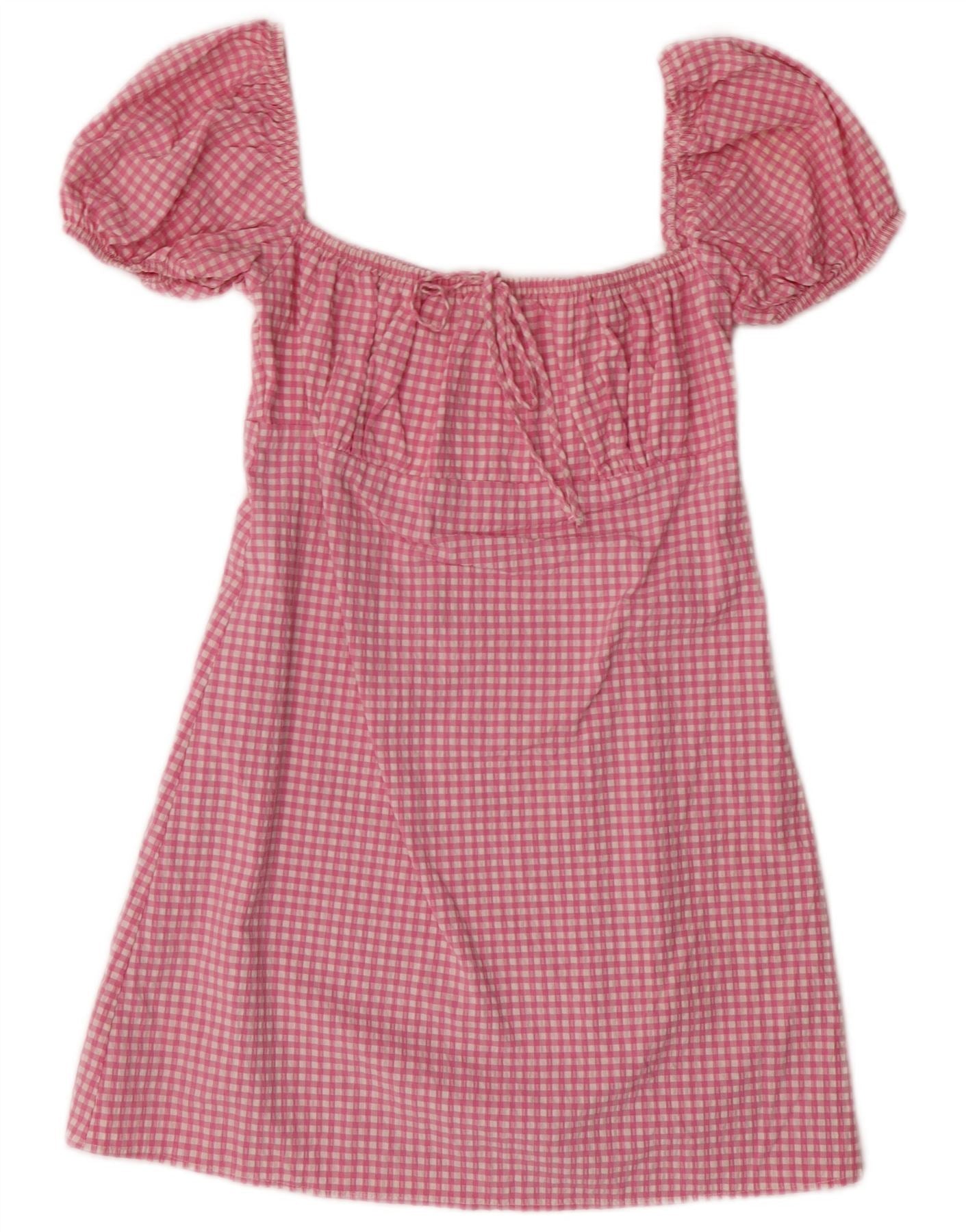 Zara Damen-Sommerkleid mit kurzen Ärmeln, Gr. 42, Mittelrosa, Gingham-Bohemien