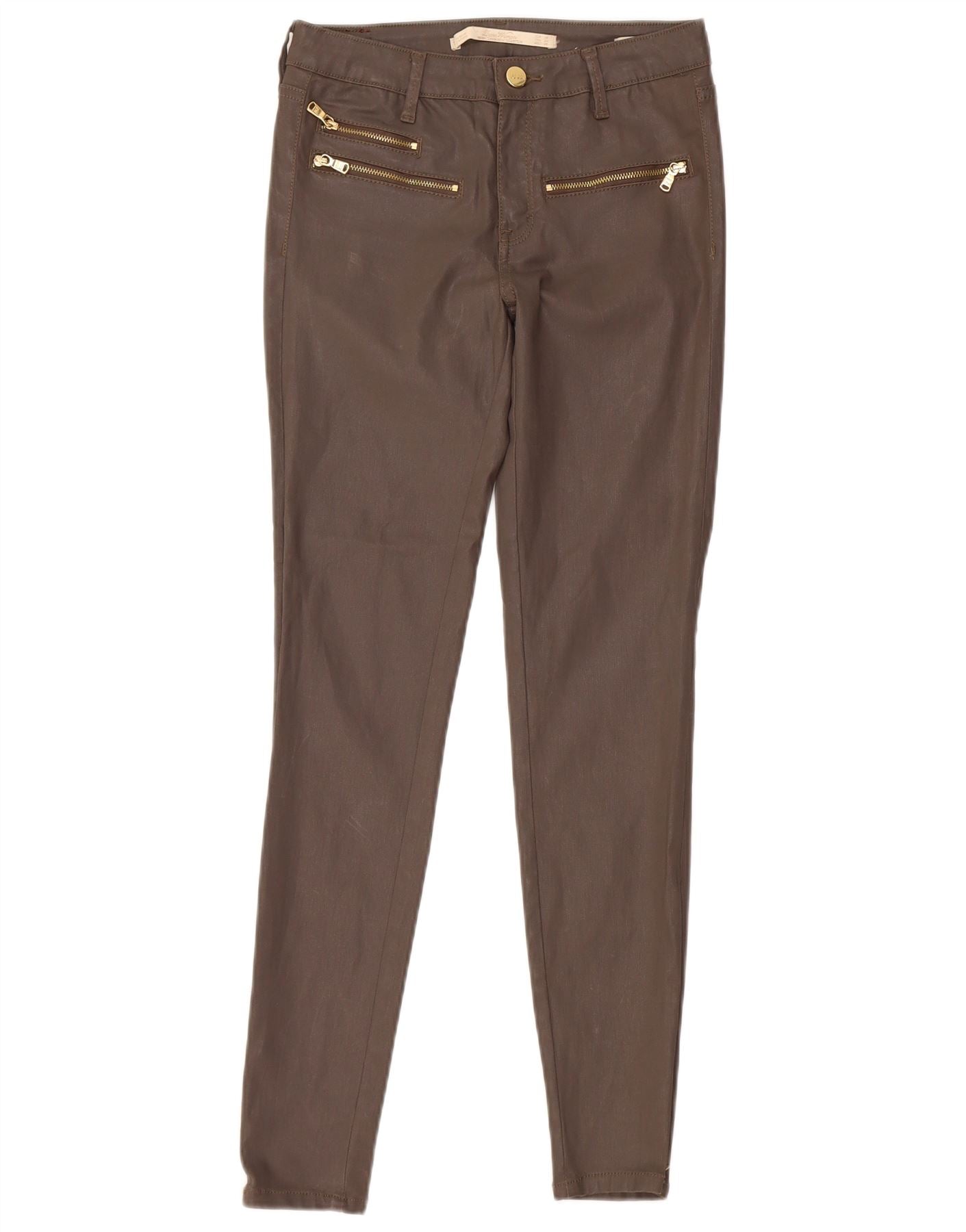 ZARA Damen Skinny Freizeithose W26 L28 Braune Baumwolle