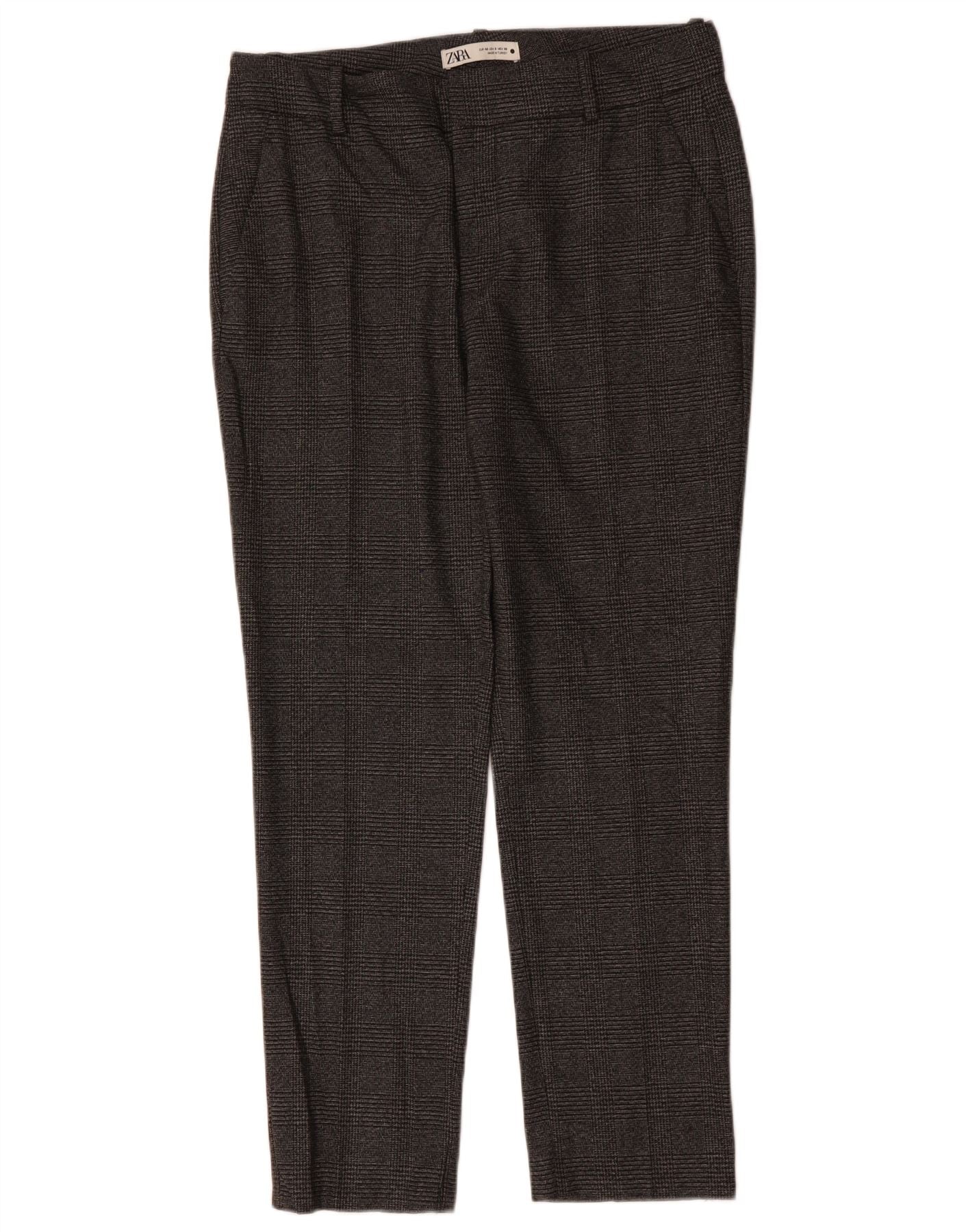 ZARA Damen Slim Anzughose EU 40 Mittel W30 L29 Grau kariertes Polyester