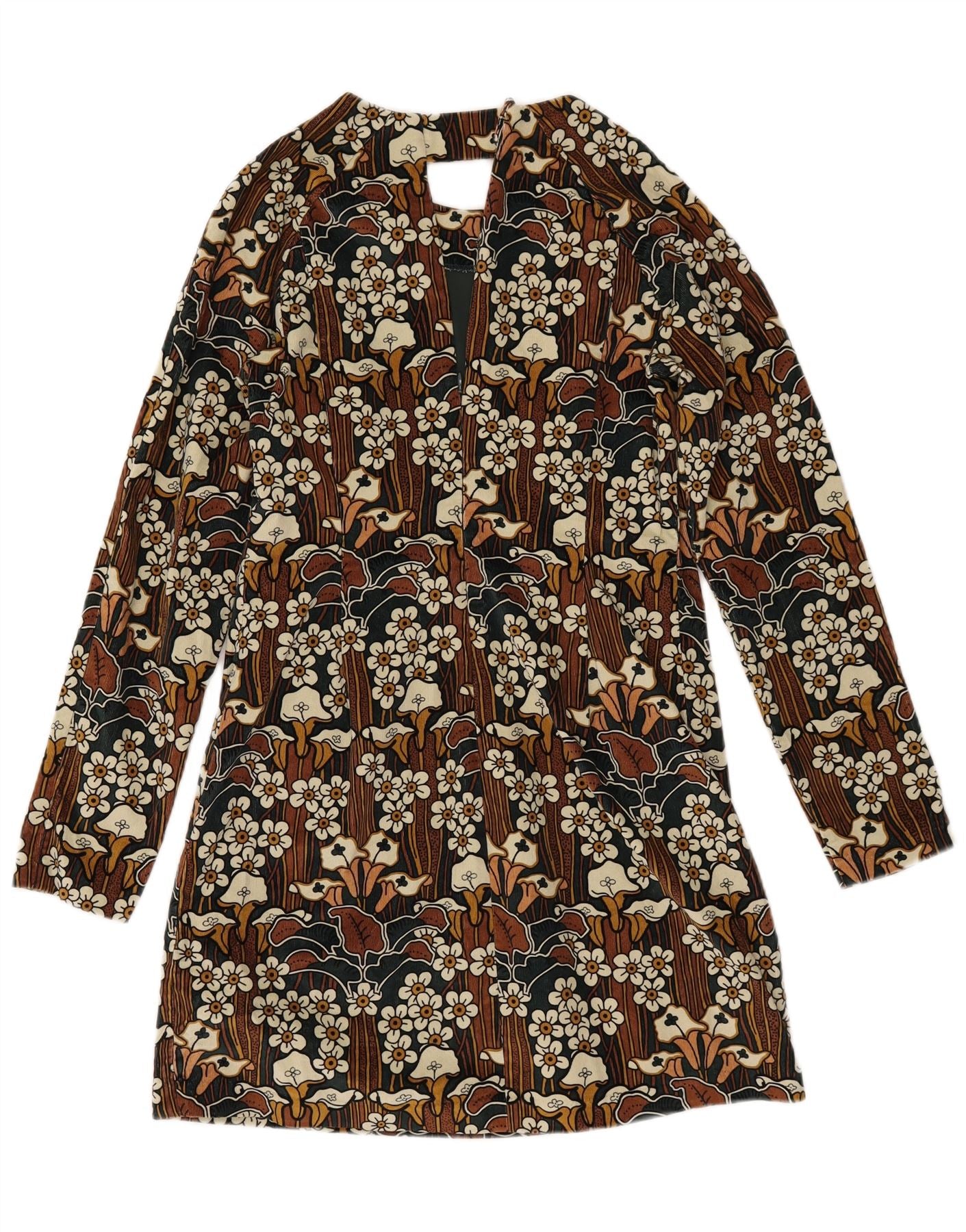 ZARA Damen Trafaluc Langarm-Etuikleid UK 14 Großes braunes Blumenmuster