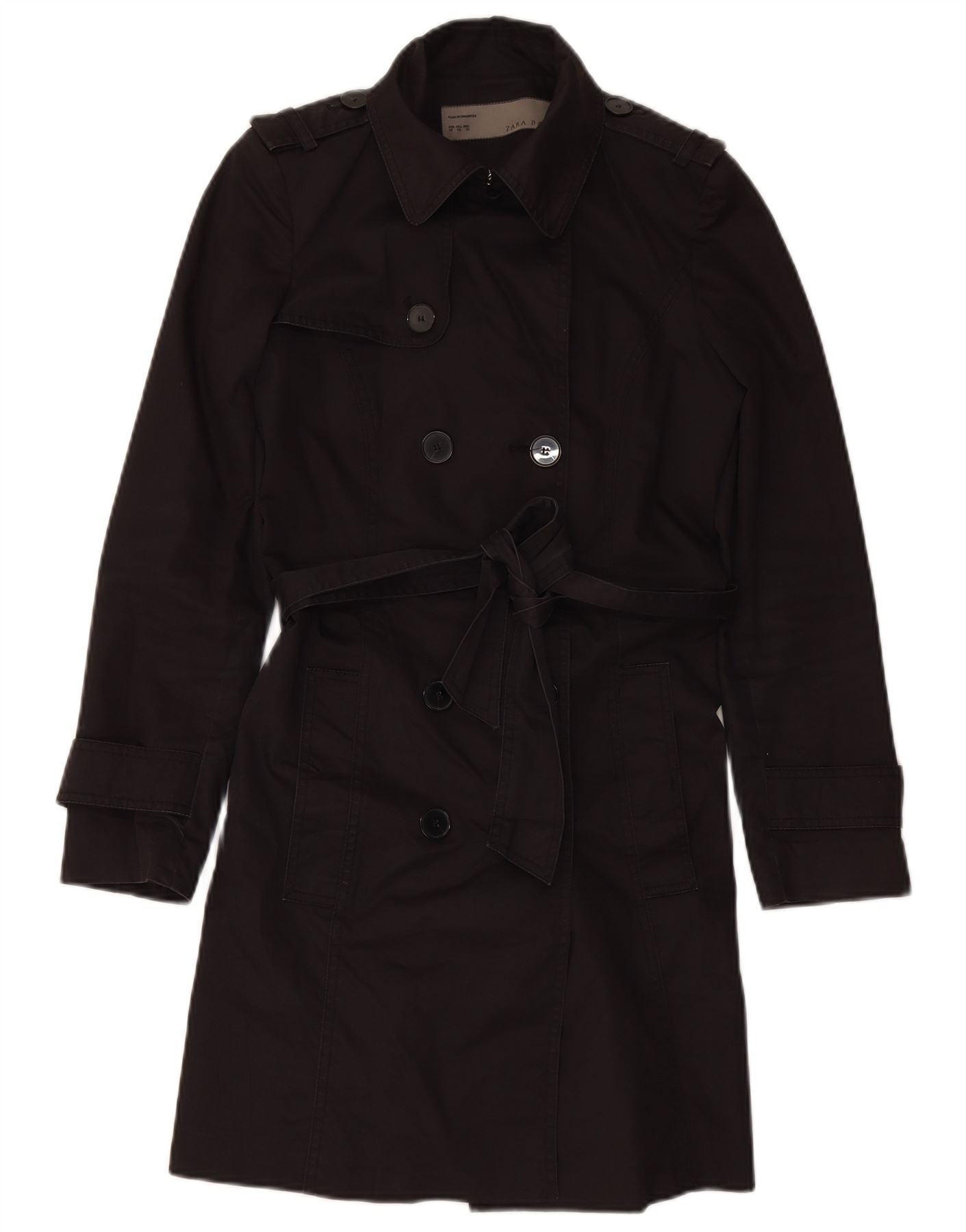 ZARA Damen Trenchcoat UK 6 XS Schwarz Baumwolle