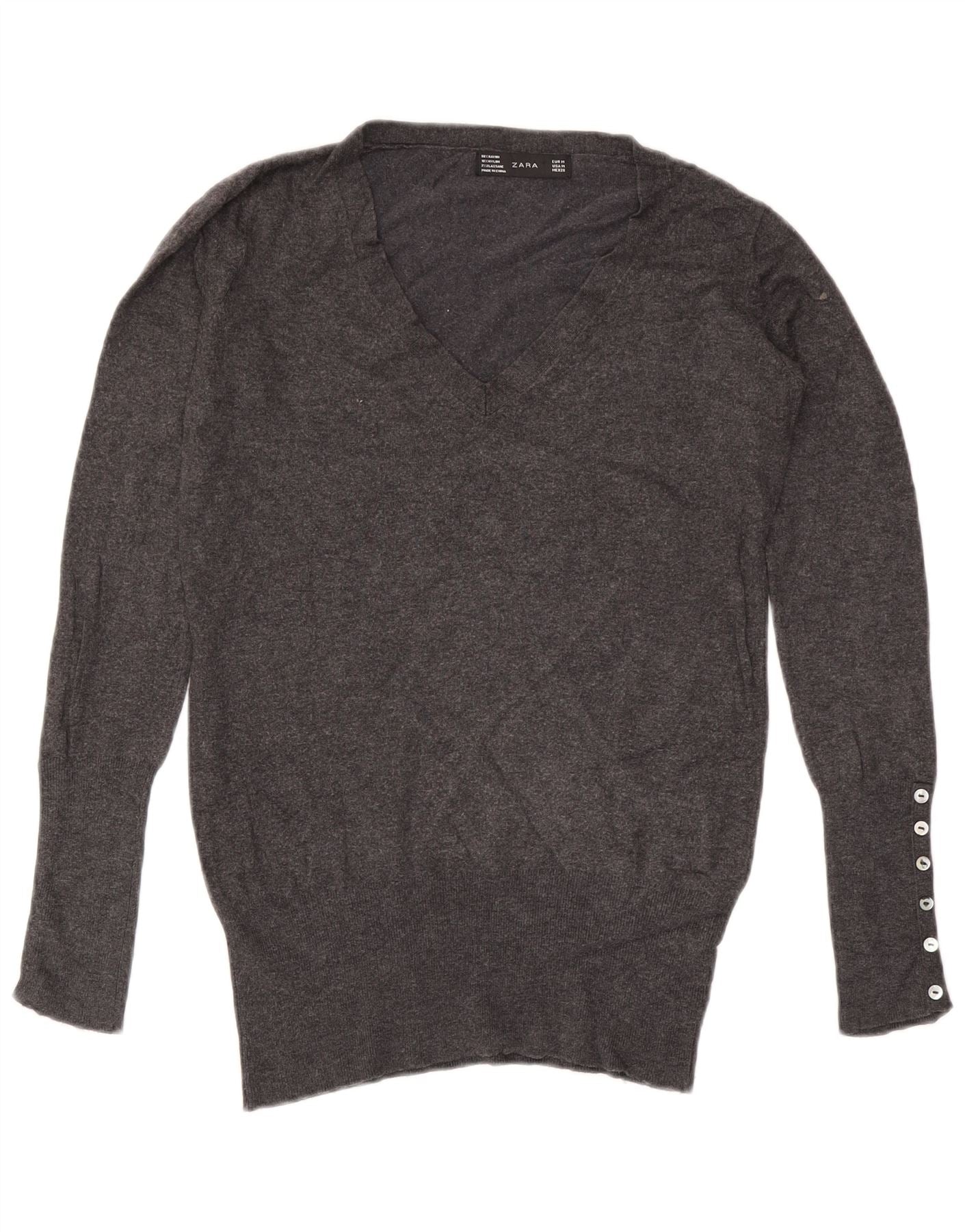 ZARA Damen-Pullover mit V-Ausschnitt, Gr. 14, mittelgraues Viskose