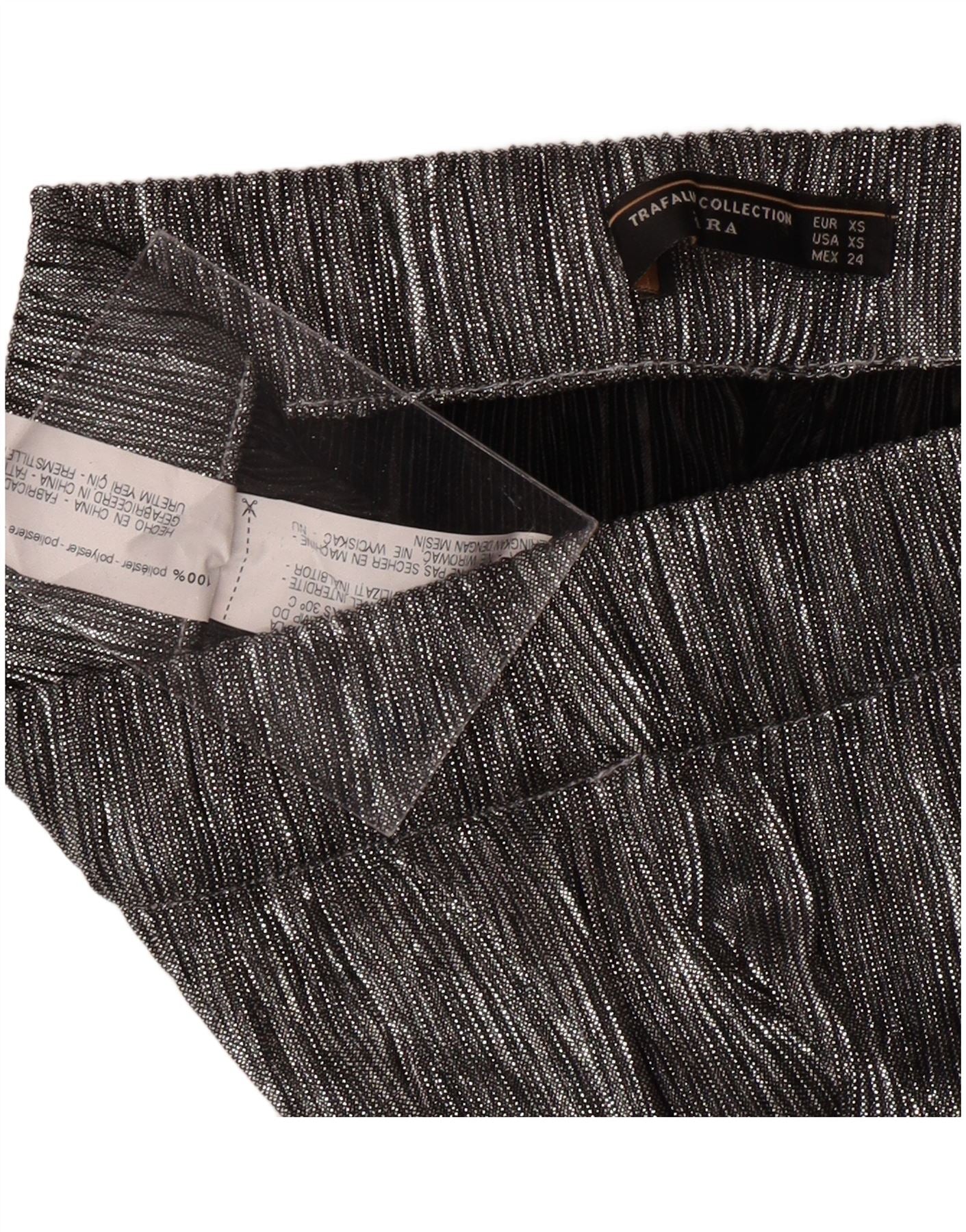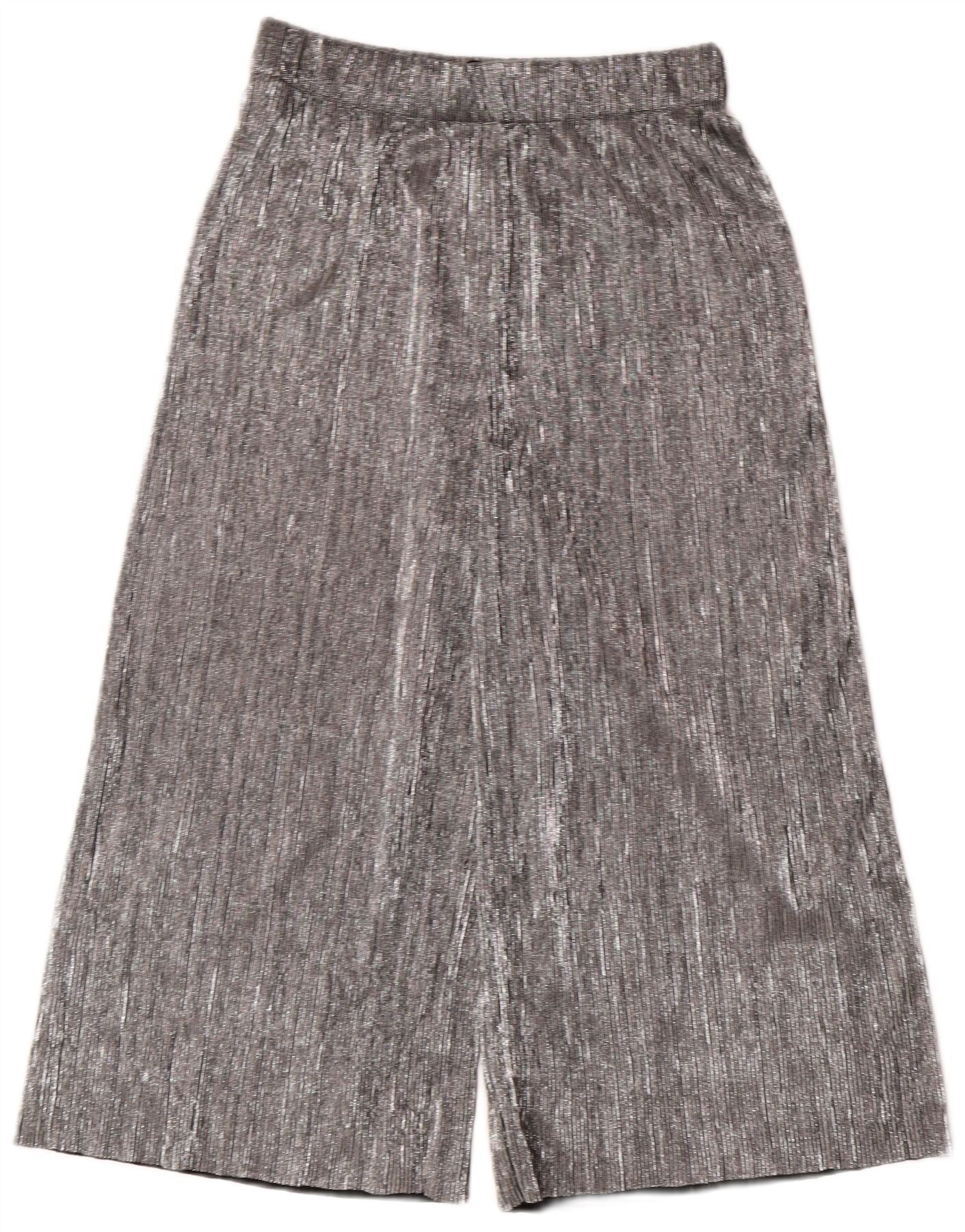 ZARA Damen Caprihose mit weitem Bein XS W24 L20 Silber Polyester