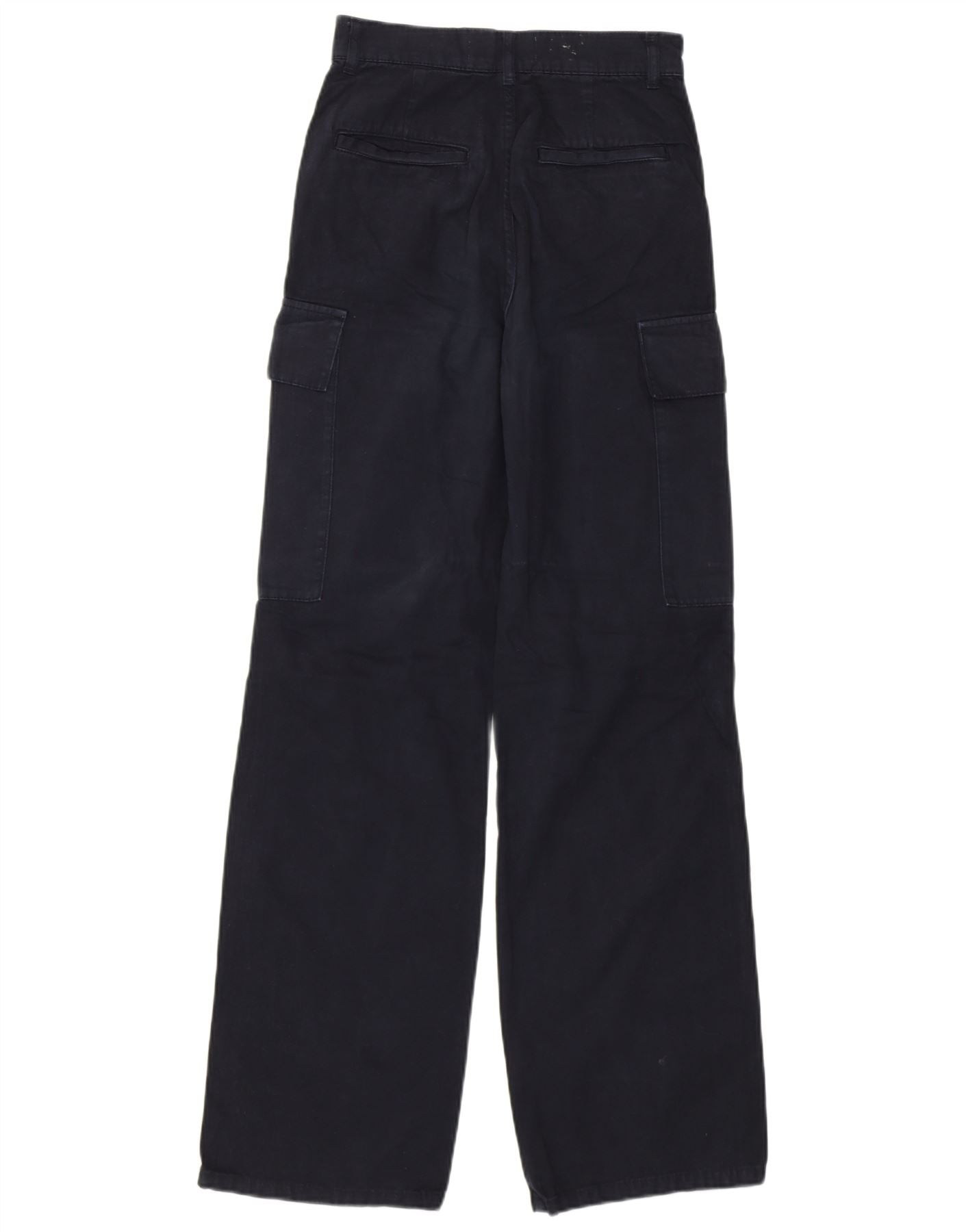 Zara Damen-Cargohose mit weitem Bein und hoher Taille, W22, L31, schwarze Baumwolle
