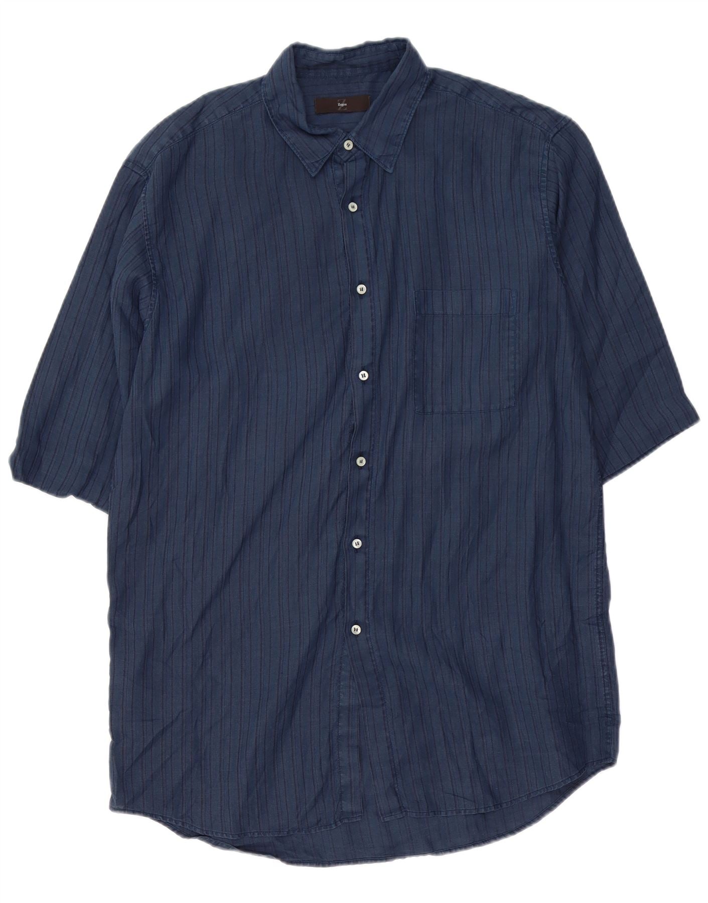 ZEGNA Herren Kurzarmhemd Größe 41 Mittel Marineblau gestreift