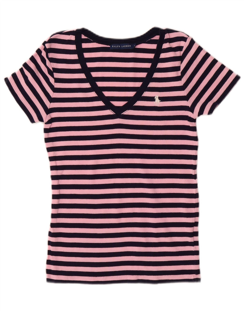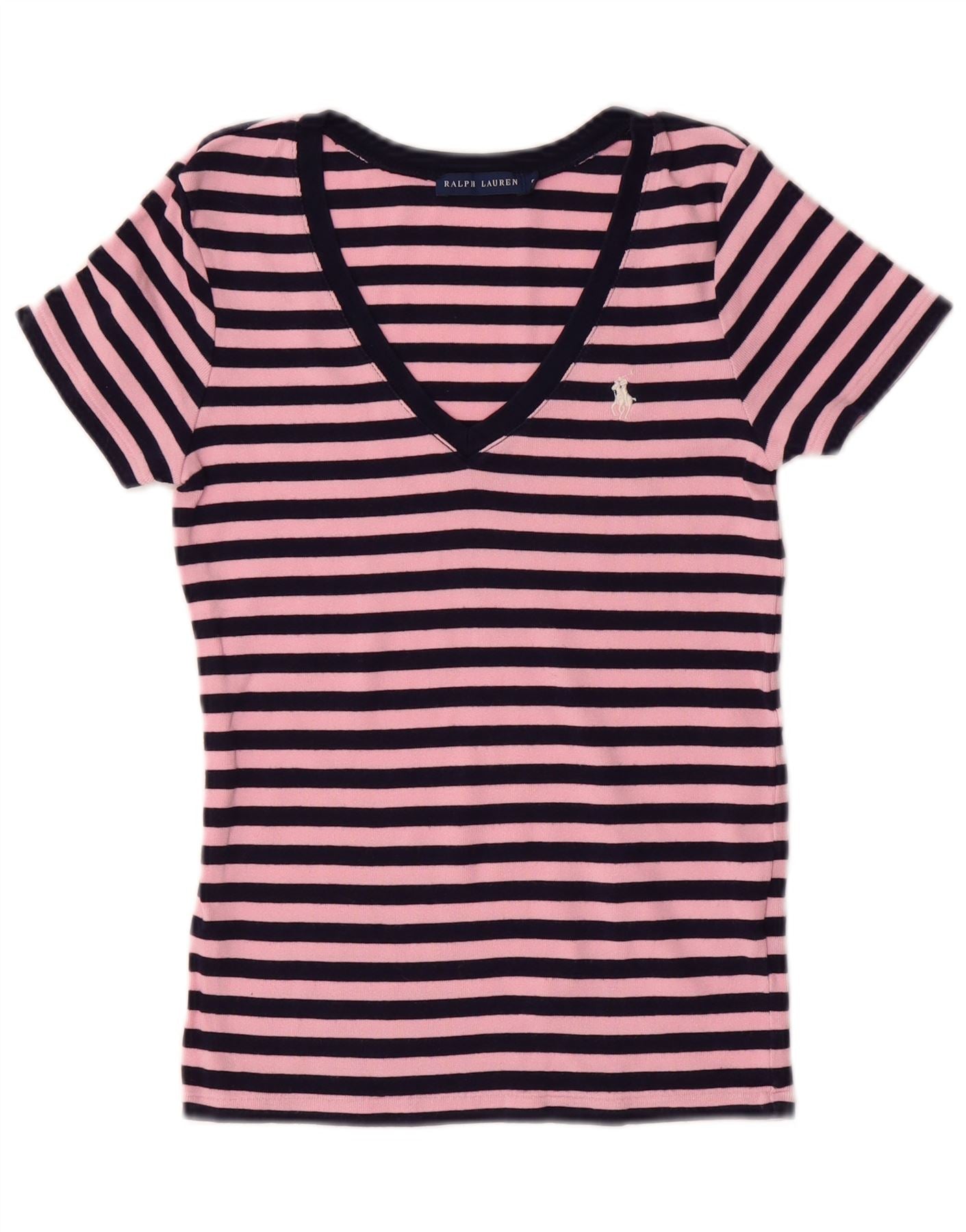 RALPH LAUREN Womens 1 Button Blazer Jacket US 12 Large Blue Striped Cotton Vintage Ralph Lauren and Second-Hand Ralph Lauren from Messina Hembry